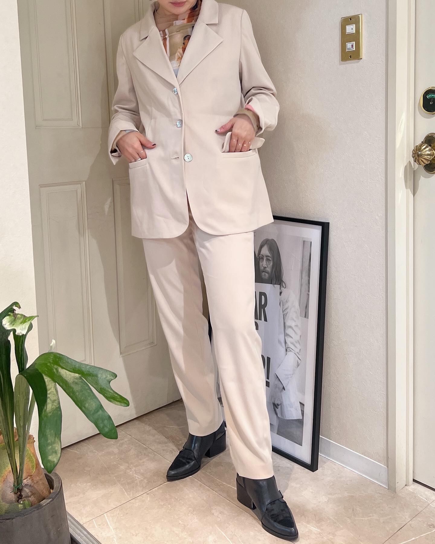 pantsは少し細身のすっきりしたラインで着用して頂けます。